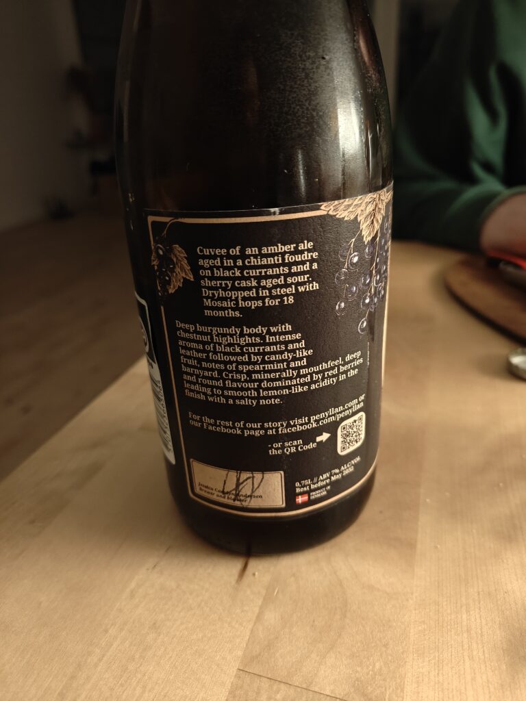 Det er en øl som både har ligget på Chianti fade og sherry fade og som også er blandet med solbær på samme tid.